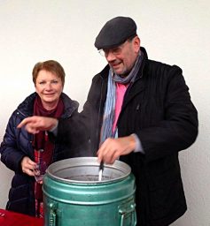 Nach etwa drei Stunden treffen wir zum Neujahrsgruß beim Sportplatz – unter dem Dach am Kiosk des TSV Großheppach – ein. Dort erwarten uns schon Christa und Gert Roller sowie Norbert Joos mit gutem Glühwein und Punsch, Brezeln und Hefezopf.